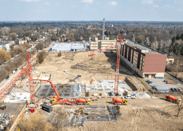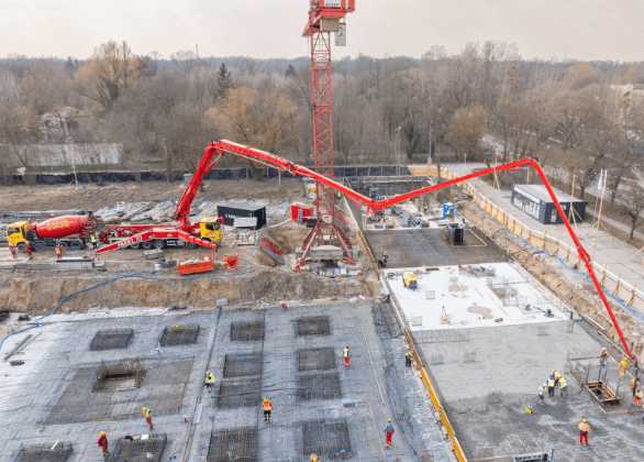 Nasza wytwórnia betonu z Grodziska Mazowieckiego dostarcza na tę budowę betony zwykłe i betony niskoemisyjne z grupy ECO LINE. Na pierwszy z etapów inwestycji realizowany w 2025 roku zostanie dostarczone łącznie ok. 7 500 m3 betonu.